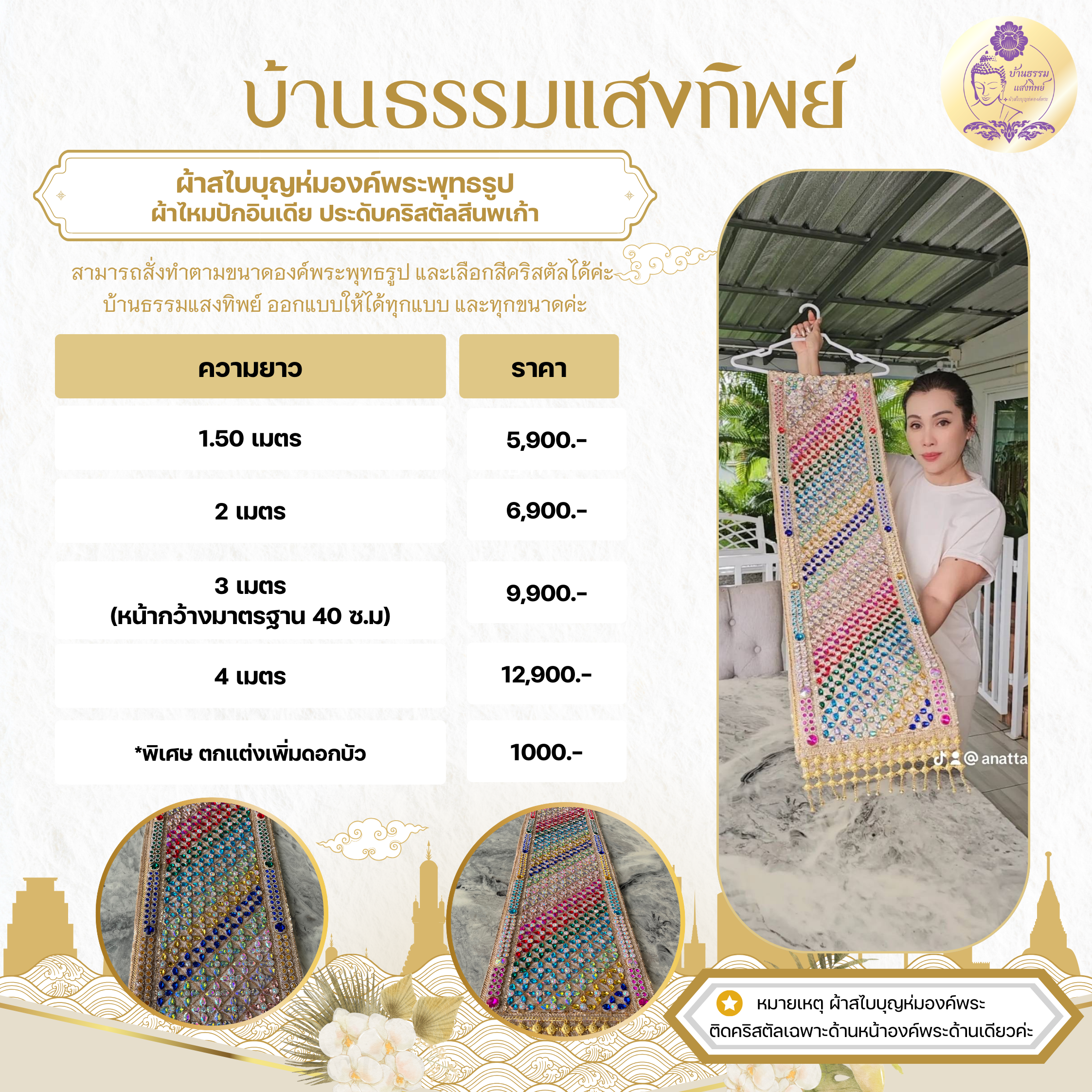 ผ้าสไบบุญห่มองค์พระ ผ้าไหมปักอินเดีย ประดับคริสตัลสีนพเก้า
